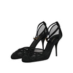 Dolce & Gabbana Black Mesh Ankle Strap Heels Pumps Shoes
