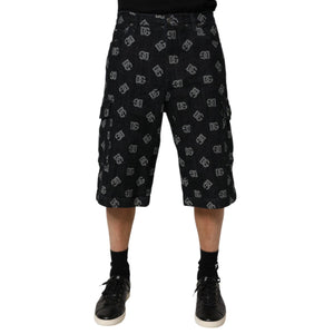 Dolce & Gabbana Black Monogram Denim Cargo Men Bermuda Short
