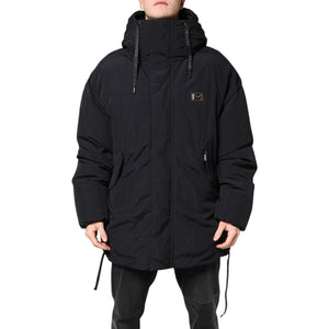 Dolce & Gabbana Black Nylon Full Zip Hooded Parka Jacket