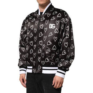 Dolce & Gabbana Black Polyester Heart Print Bomber Jacket