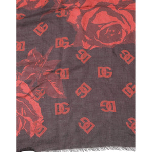 Dolce & Gabbana Black Red Floral Modal Wrap Shawl Scarf