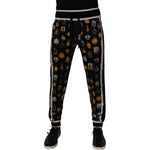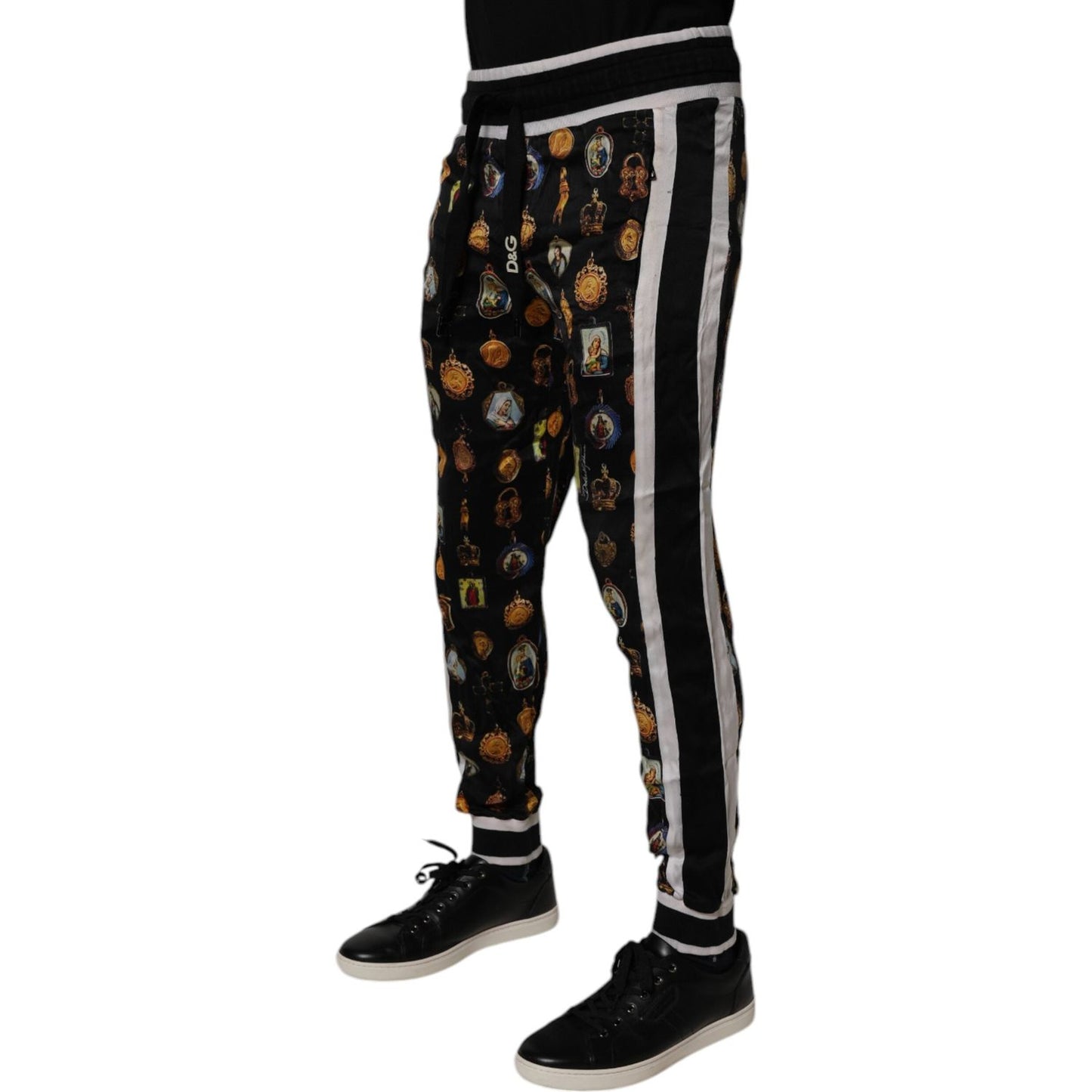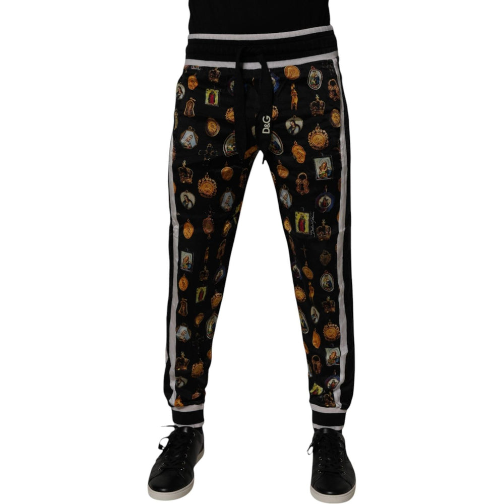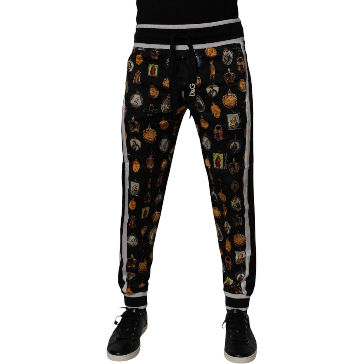 Dolce & Gabbana Black Religious Print Silk Men Jogger Pants