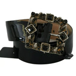 Dolce & Gabbana Black Shiny Leather Crystal Logo Buckle Belt