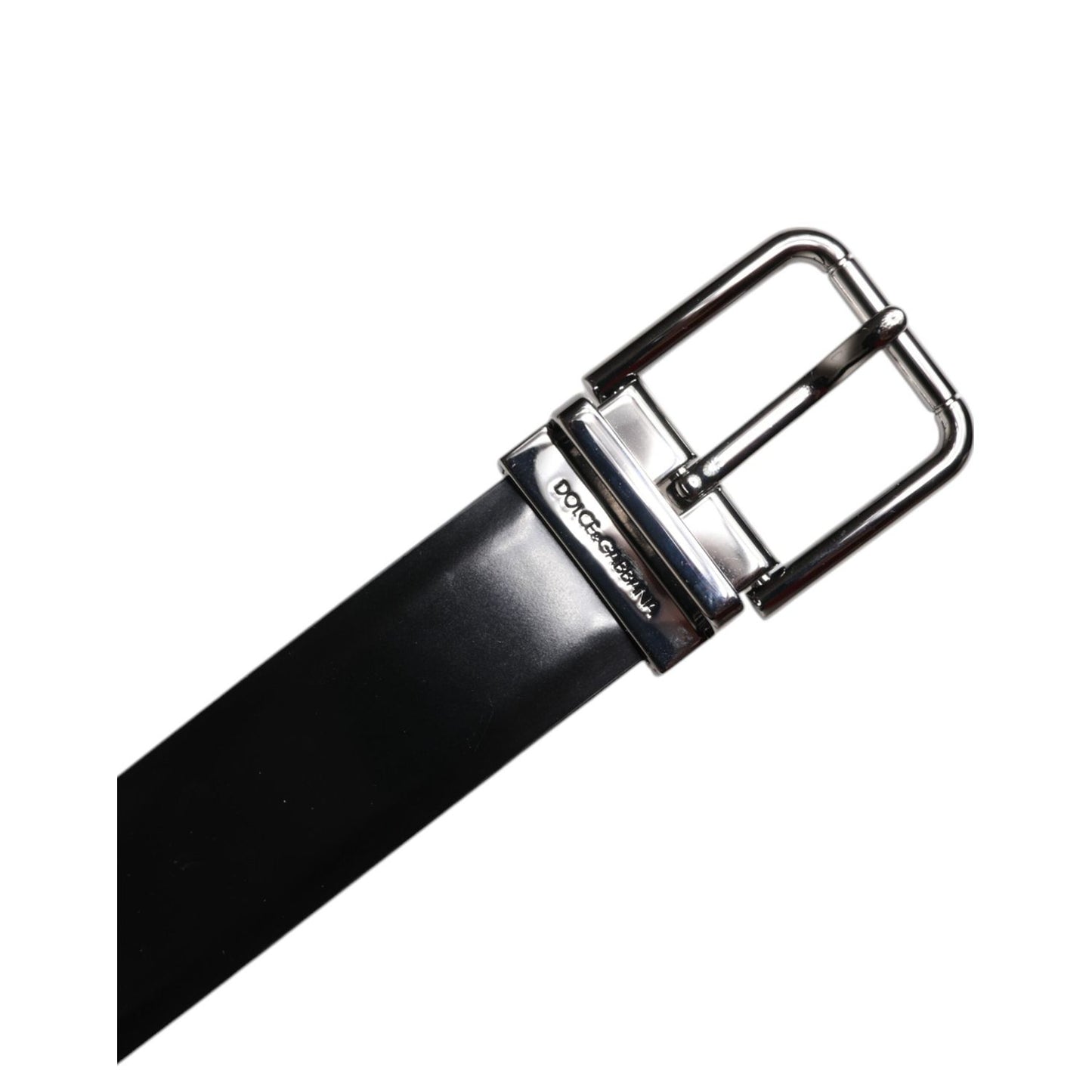 Dolce & Gabbana Black Shiny Leather Silver Metal Buckle Belt