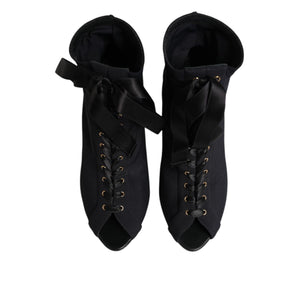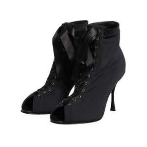Dolce & Gabbana Black Stiletto Heels Lace Up Boots Shoes