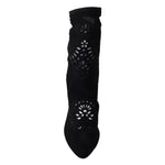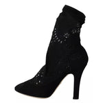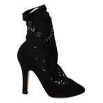 Dolce & Gabbana Black Stretch Pumps Boots Floral Lace Shoes