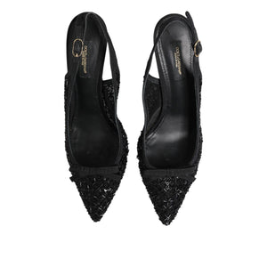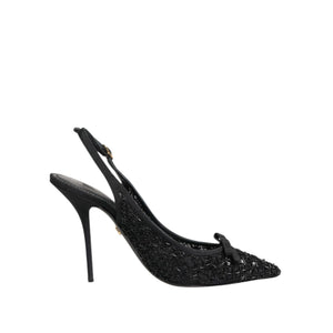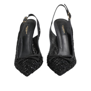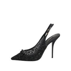 Dolce & Gabbana Black Tulle Ricamo Heels Slingbacks Shoes