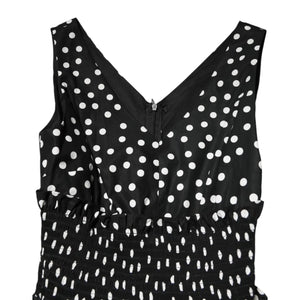 Dolce & Gabbana Black White Cotton Polka Dot Print V Neck Dress