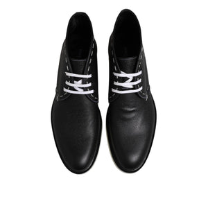 Dolce & Gabbana Black White Leather Ankle Boots Shoes