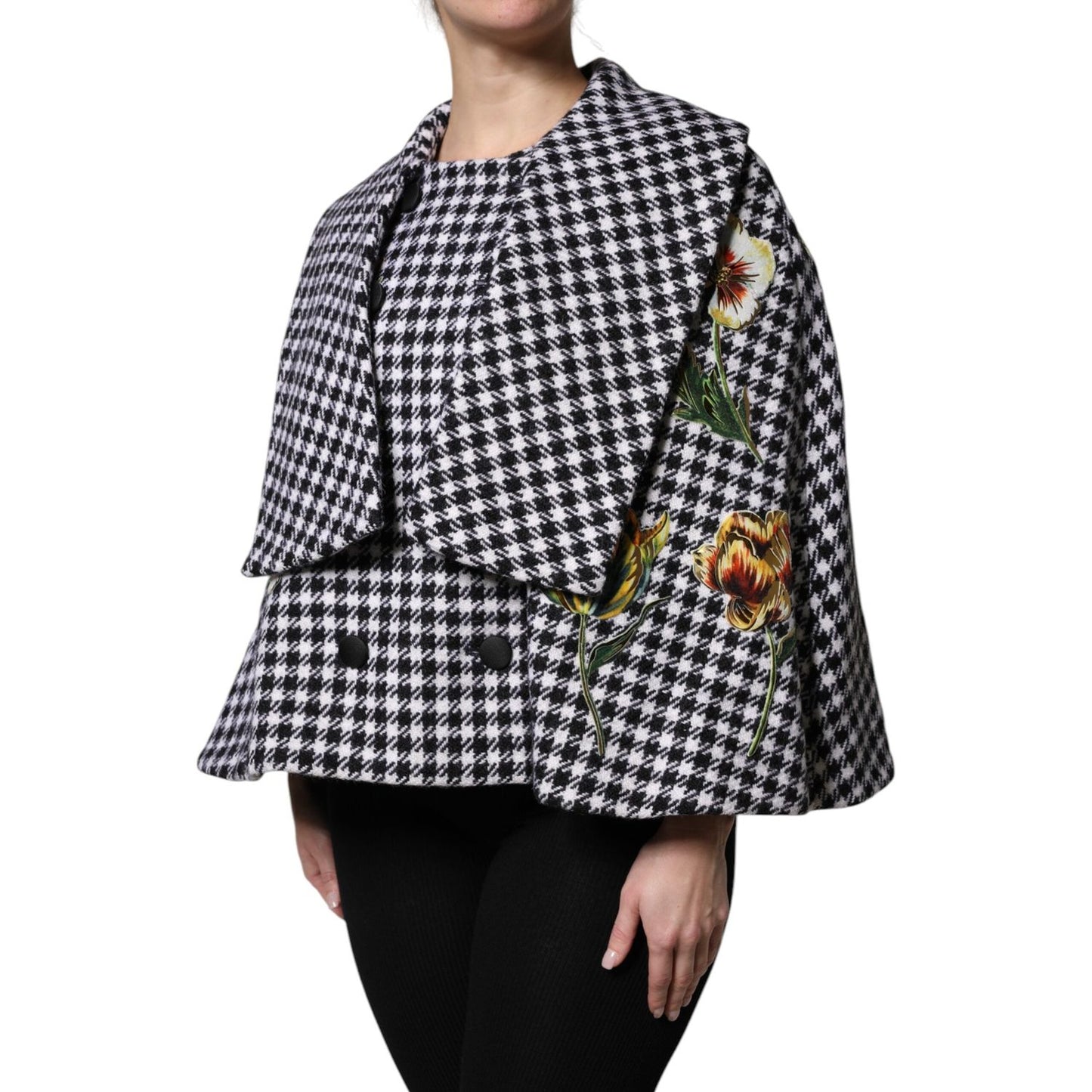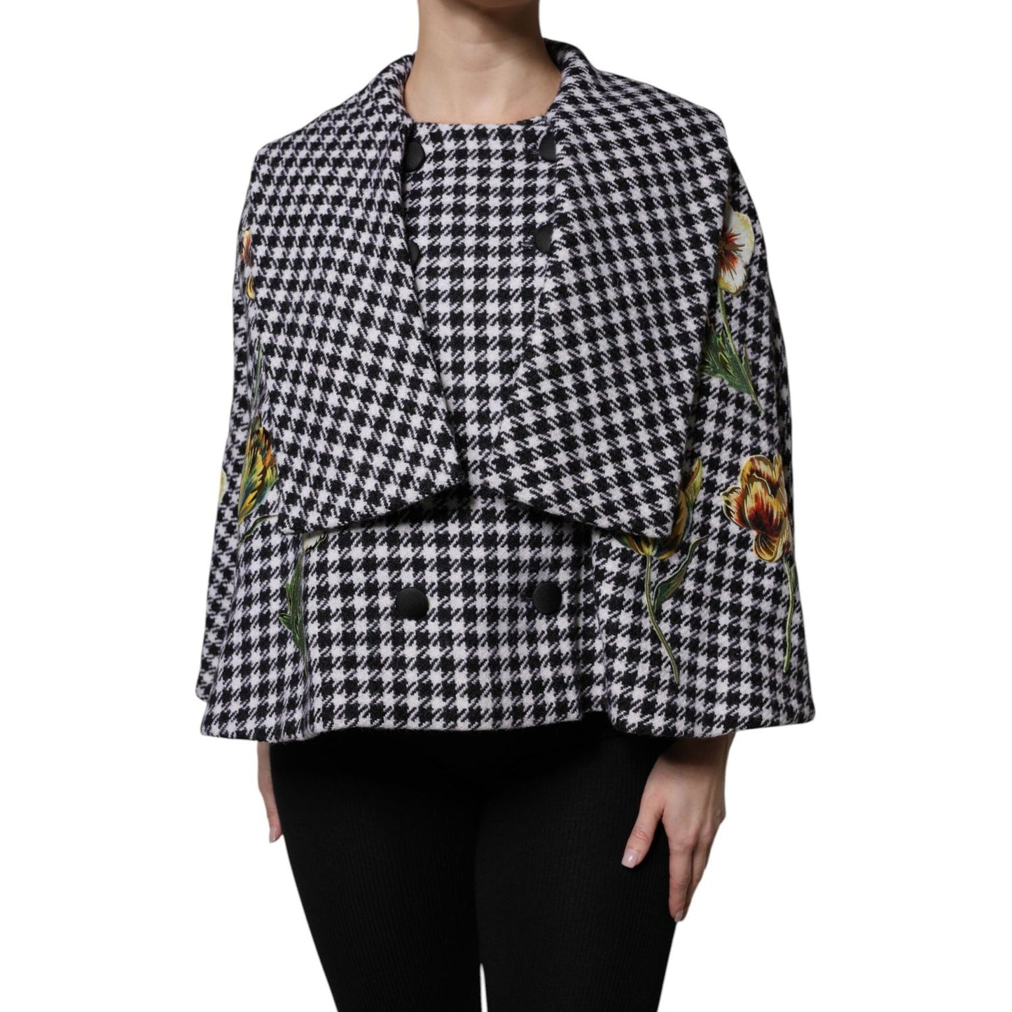 Dolce & Gabbana Black White Monochrome Patterned Floral Cape Jacket
