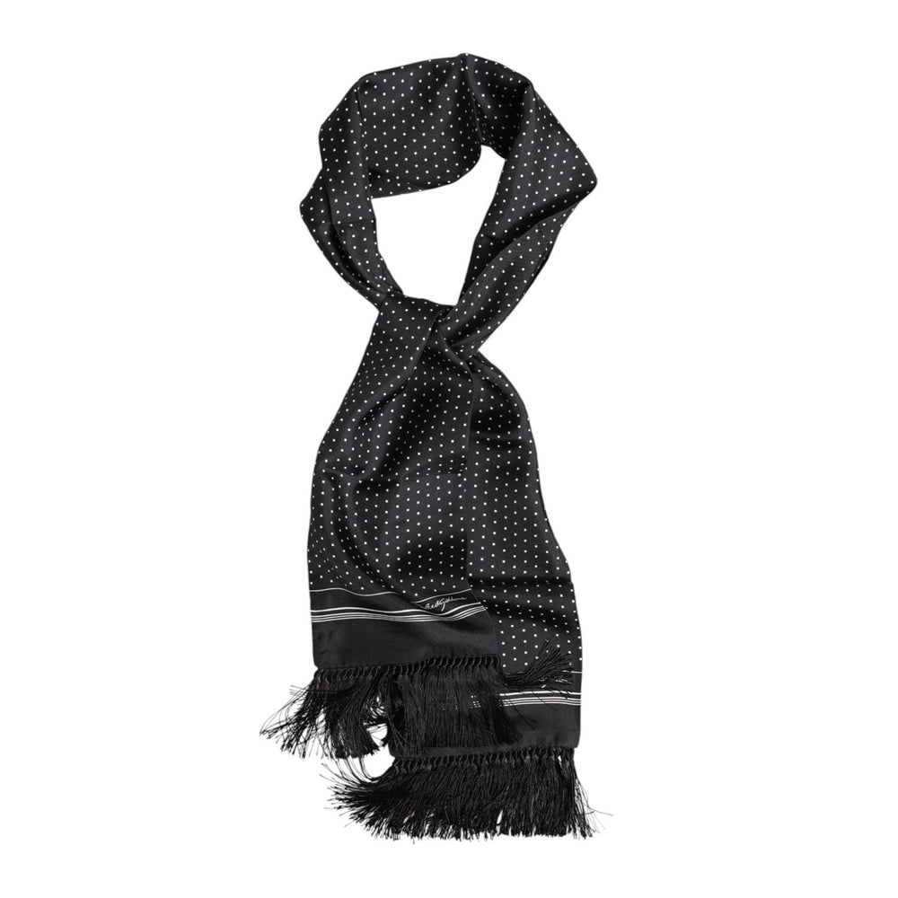 Dolce & Gabbana Black White Polka Dot Fringes Foulard Scarf