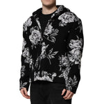 Dolce & Gabbana Black Wool Floral Printed Men Hooded Jacket