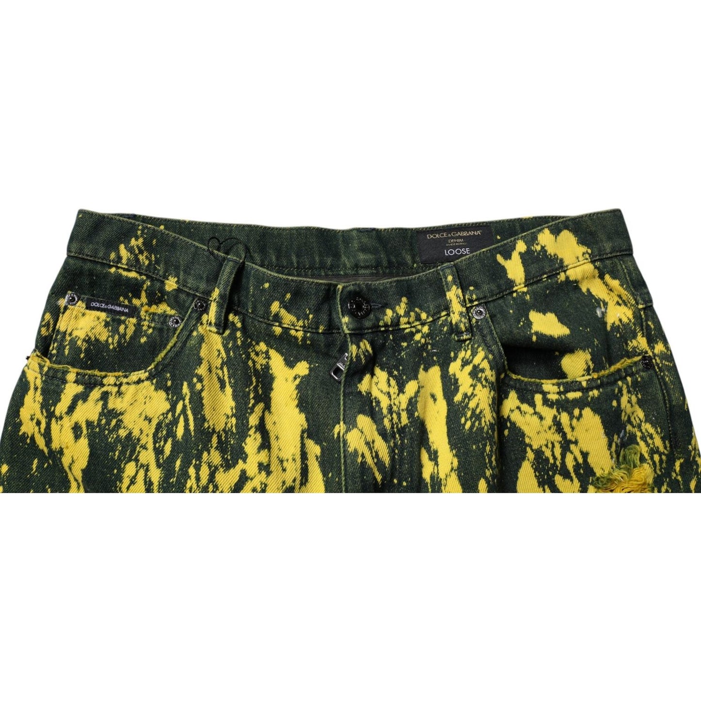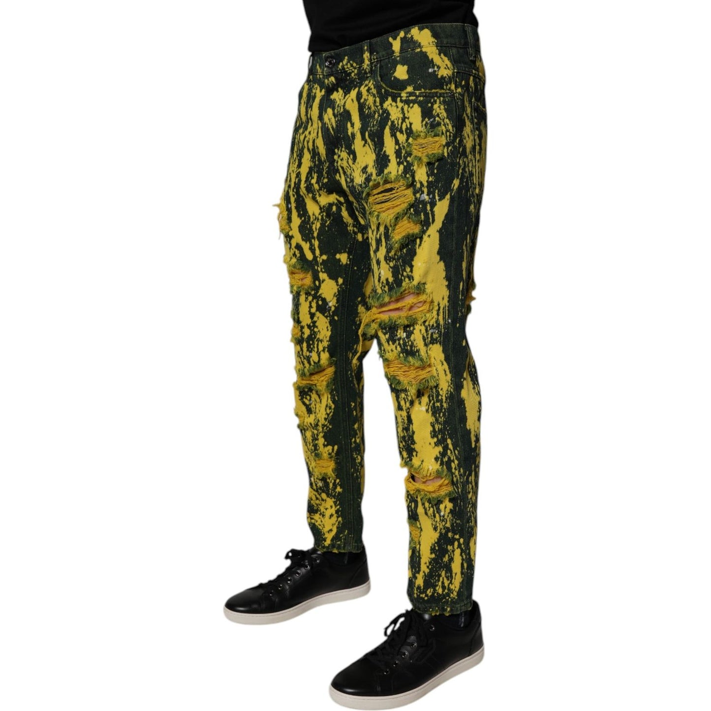 Dolce & Gabbana Black Yellow Tie Dye Tattered Skinny Men Denim Jeans