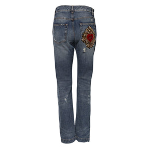 Dolce & Gabbana Blue Cotton Boyfriend Tattered Denim Jeans