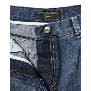 Dolce & Gabbana Blue Cotton High Waist Wide Leg Denim Jeans