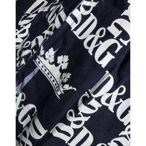 Dolce & Gabbana Blue Crown Logo Print Slim Fit Cotton Shirt