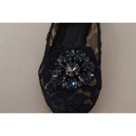 Dolce & Gabbana Blue Crystal Loafer Lace Ballet Flats Shoes