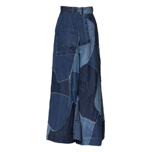 Dolce & Gabbana Blue Denim Long Maxi Patchwork Cotton Skirt