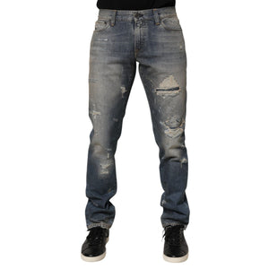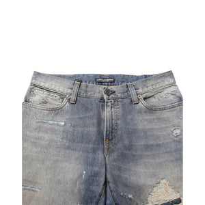 Dolce & Gabbana Blue Distressed Denim Slim Fit Pants Jeans