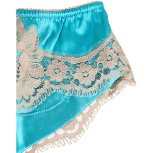 Gorgeous brand new, 100% Authentic Dolce & Gabbana women’s underwear crafted in blue silk satin with delicate beige lace trim for an elegant finish. This New Brief offers a comfortable fit with a refined, feminine style.
