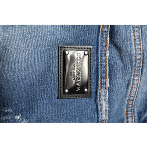Dolce & Gabbana Blue Washed Cotton Logo Plaque Denim Jeans