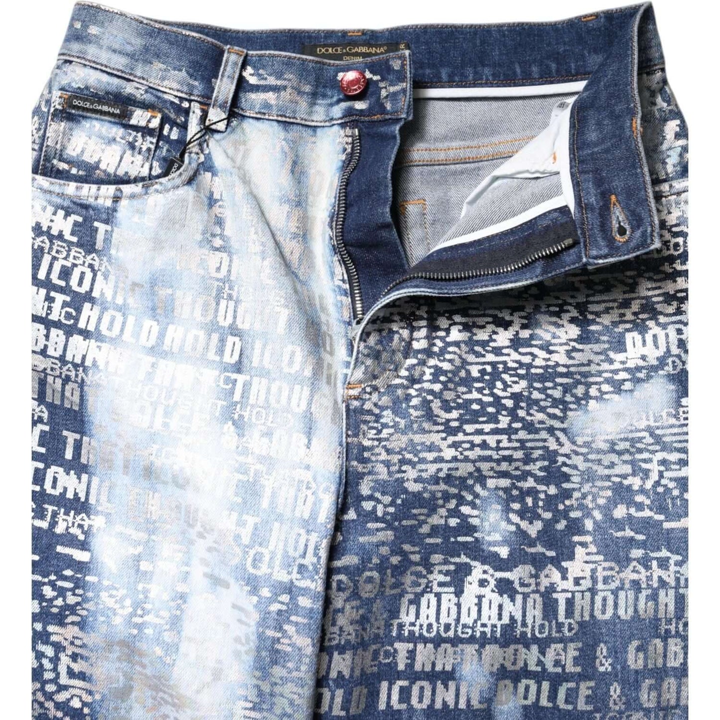 Dolce & Gabbana Blue Washed Print High Waist Denim Jeans