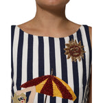 Dolce & Gabbana Blue White Striped Embroidered A-line Dress