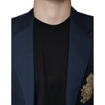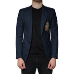 Dolce & Gabbana Blue Wool Logo Single Breasted Coat Blazer