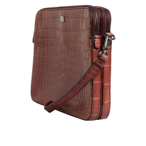 • Dolce & Gabbana Bordeaux Croc Leather Logo Plaque Men Briefcase Bag