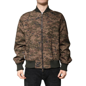 Dolce & Gabbana Brown Camouflage Bomber Full Zip Jacket
