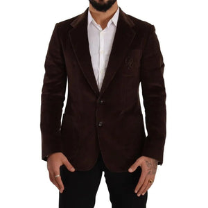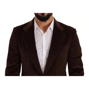 Dolce & Gabbana Brown Corduroy Slim Fit Coat DG Logo Blazer