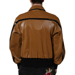 Dolce & Gabbana Brown Leather Full Zip Men Bomber Jacket