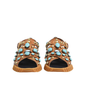 Dolce & Gabbana Brown Leather Studded Slides Sandals Shoes