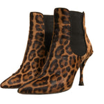 Dolce & Gabbana Brown Leopard Leather Stretch Heels Boots Shoes