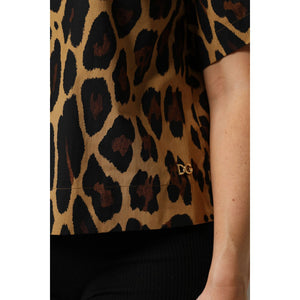 Dolce & Gabbana Brown Leopard Short Sleeve Collared Polo Top