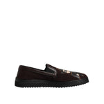 Dolce & Gabbana Brown Suede DG Family Slip On Flats Shoes
