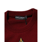 Dolce & Gabbana Burgundy Cashmere Lion Crest Pullover Sweater