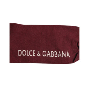 Dolce & Gabbana Burgundy Stretch Logo Print Mid Calf Socks