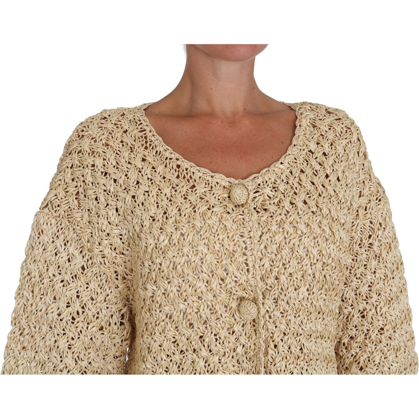 Dolce & Gabbana Beige Cardigan Crochet Knitted Raffia Sweater