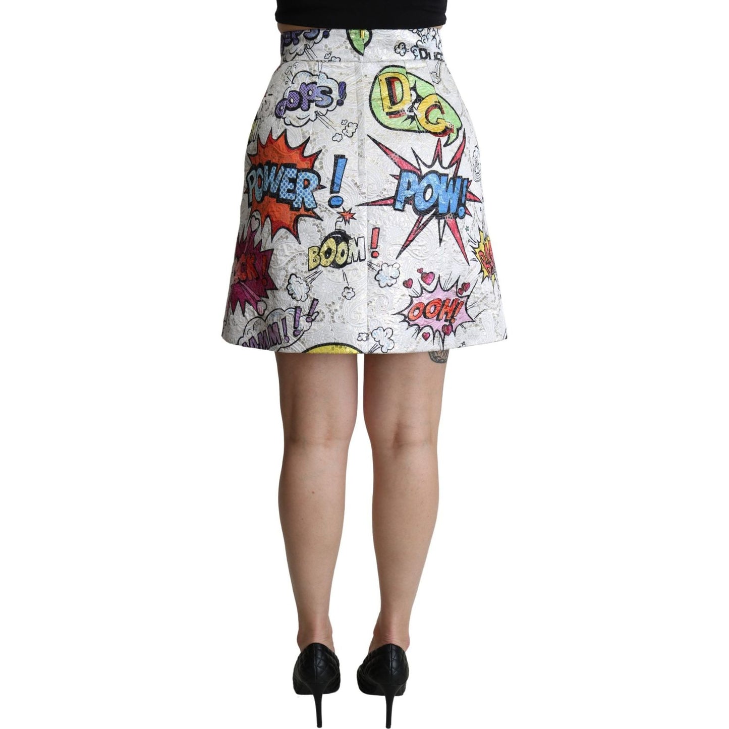 Dolce & Gabbana White Cartoon Brocade A-line High Waist Skirt