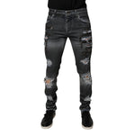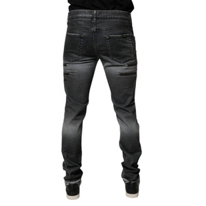 Dolce & Gabbana Dark Gray Tattered Cotton Skinny Denim Jeans