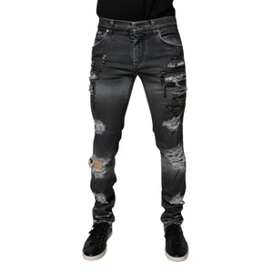 • Dolce & Gabbana Dark Gray Tattered Cotton Skinny Denim Jeans