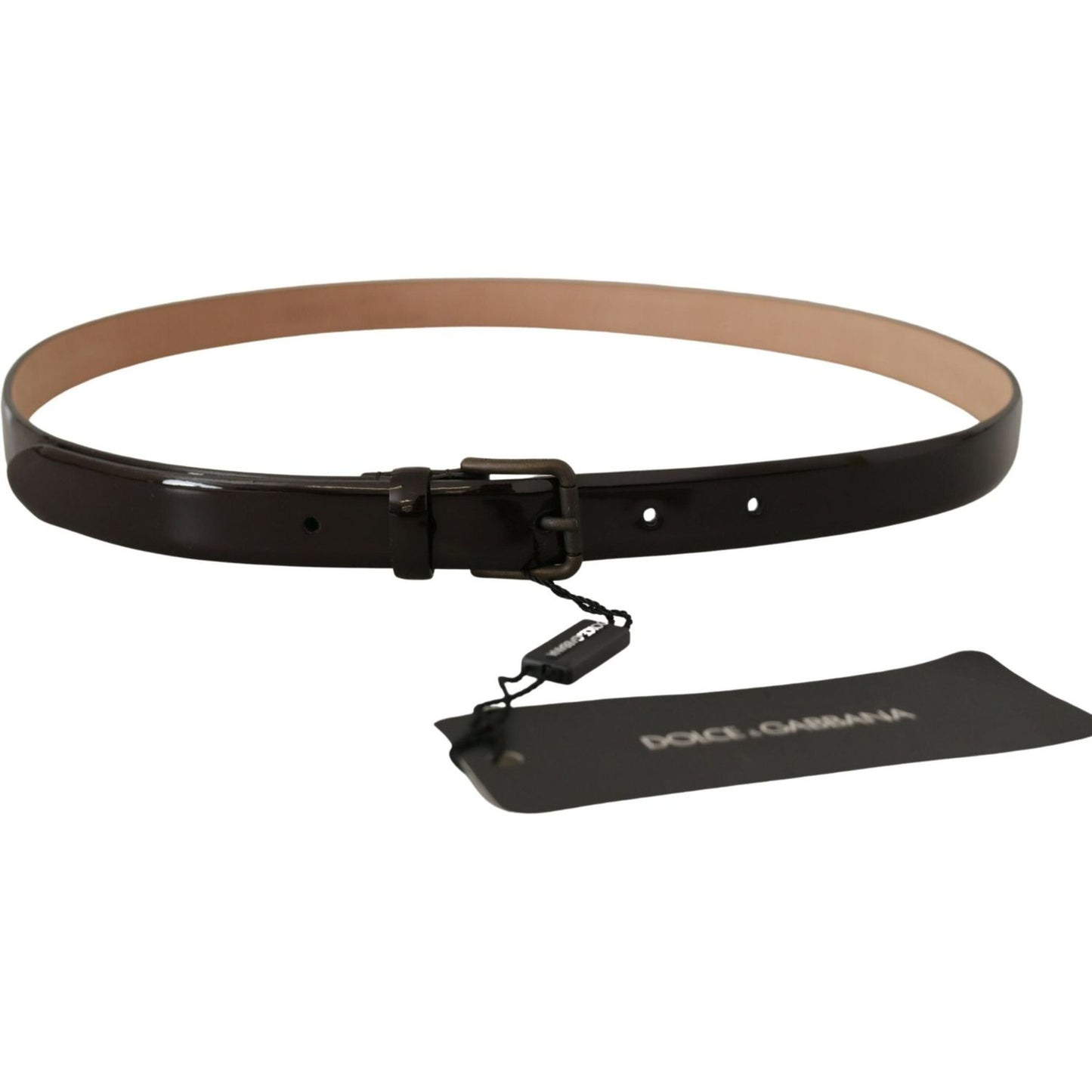 Dolce & Gabbana Black Patent Leather Logo Metal Waist Buckle Belt