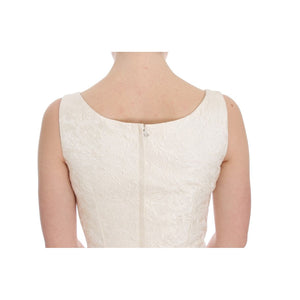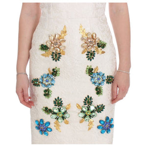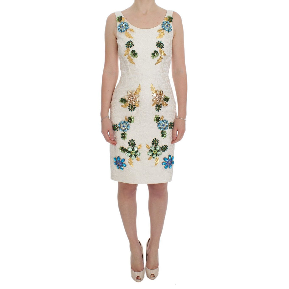 Dolce & Gabbana White Brocade Crystal Sheath Dress