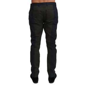 Step into style with these exquisite Dolce & Gabbana casual pants. Perfectly tailored to fit slim, they boast a sophisticated gray hue accented by tasteful blue stripes. The blend of cotton and nylon ensures both comfort and durability, making them an ideal choice for both casual and upscale occasions. Crafted with unmatched Italian craftsmanship, these pants feature front and back pockets, subtle logo details, and are destined to make a statement in your wardrobe.