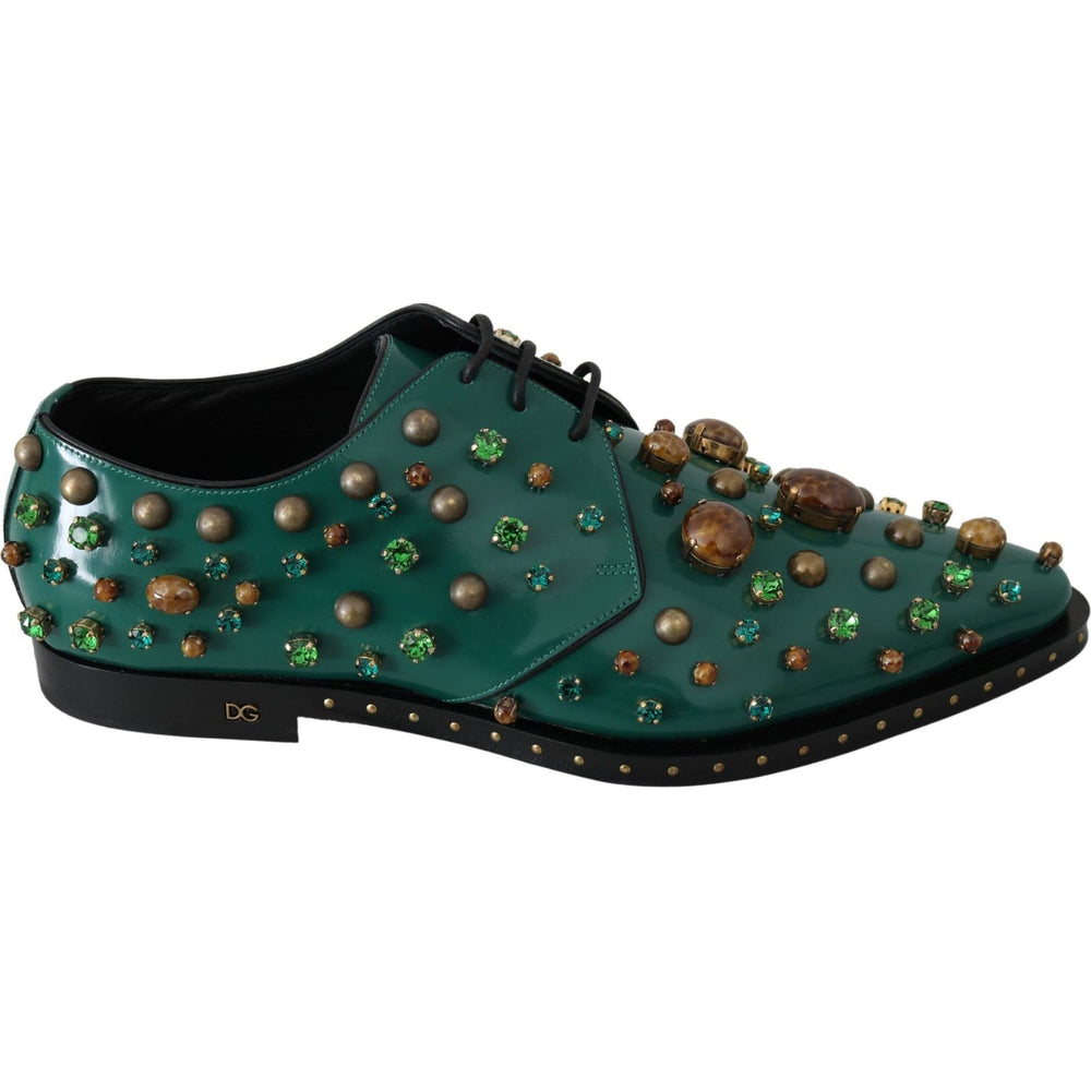 Dolce & Gabbana Green Leather Crystal Dress Broque Shoes