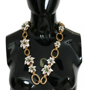 Dolce & Gabbana Gold Brass Oversize Chain LILY Flowers Necklace