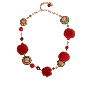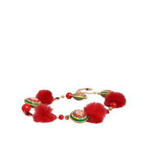• Dolce & Gabbana Gold Brass Red Fur Crystal Waist Torero Belt