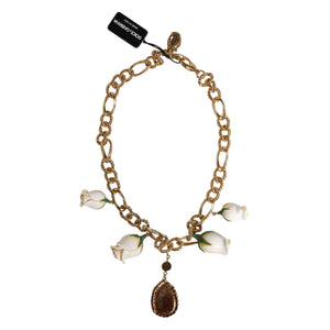 Dolce & Gabbana Gold Brass Short Chain Flower Crystal Pendant Necklace