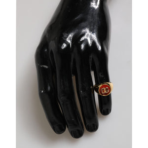 Dolce & Gabbana Gold Tone Real Brass Red DG Logo Men Ring
